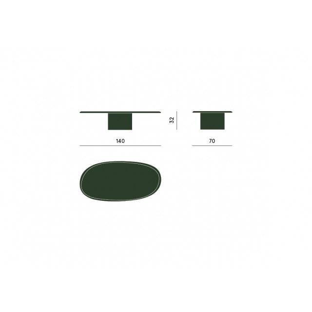 Tavolo basso ovale in pannelli di fibre di legno. Base laccata opaca, disponibile con piano laccato opaco o in marmo con spessore da 20 mm.