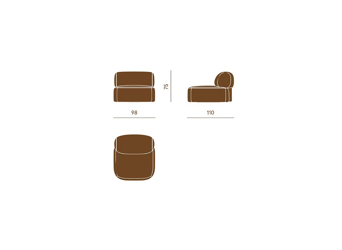 Slow P può essere rivestita con tessuti naturali, pelli, soffici lane da scegliere e abbinare alle finiture delle gambe. Un progetto per infinite declinazioni.