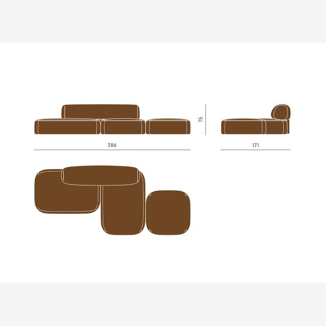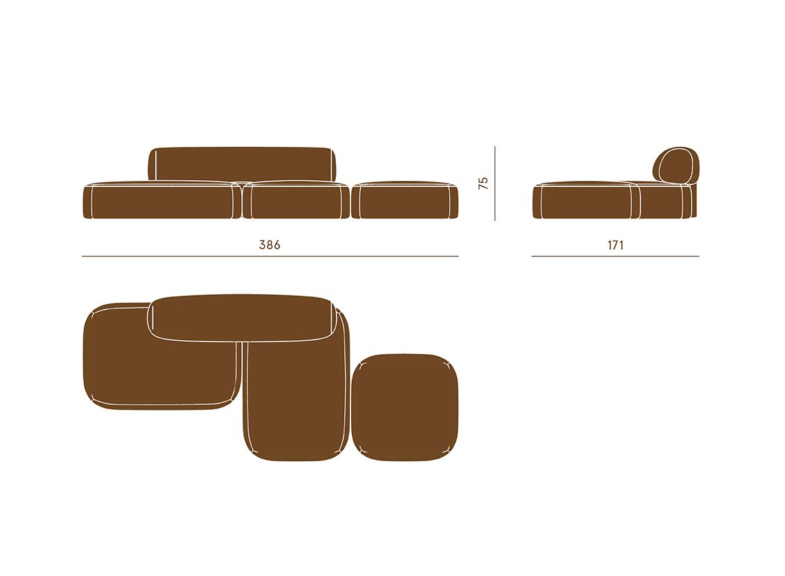 Versatili anche i materiali di rivestimento di Slow: tessuti naturali, pelli, soffici lane da scegliere e abbinare alle finiture delle gambe. Un progetto per infinite declinazioni.