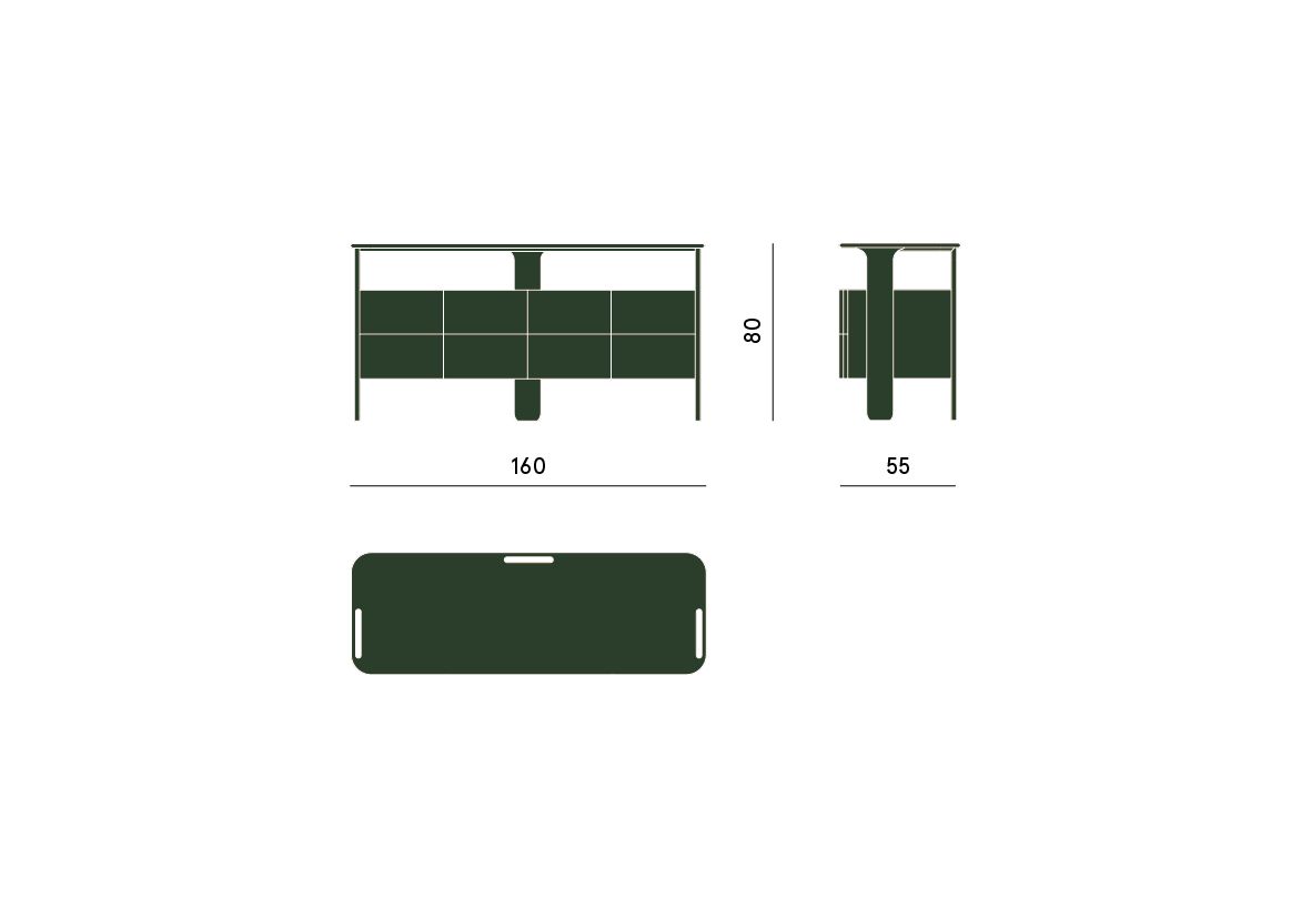 Comò con parte massicce, gambe e maniglie in legno frassino. Sottocoperta, contenitori cassetti e top in pannelli di fibre di legno. Sponde e schienale cassetto in listellare impiallacciato tanganika. Fondo cassetti in multistrati di pioppo, tappezzati in econabuk. Guide estrazione totale regolabili. Struttura laccata opaca, disponibile con piano laccato opaco o piano in marmo con spessore da 20 mm.